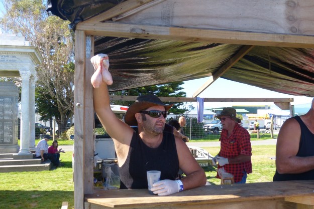 The following day found us in town at the food festival which is the annual highlight of Hokitika drawing people in from all over the country. It has been going for nearly thirty years and attracts the adventurous eater that wants to try the weird and unusual. Whilst there were some unusual foods on offer ie: huhu grubs both alive and cooked, mountain oysters (sheeps testicles) and gulls eggs but most of it was very ordinary. What was entertaining were the people themselves that had taken this opportunity to dress up weird and wacky either individually or collectively.